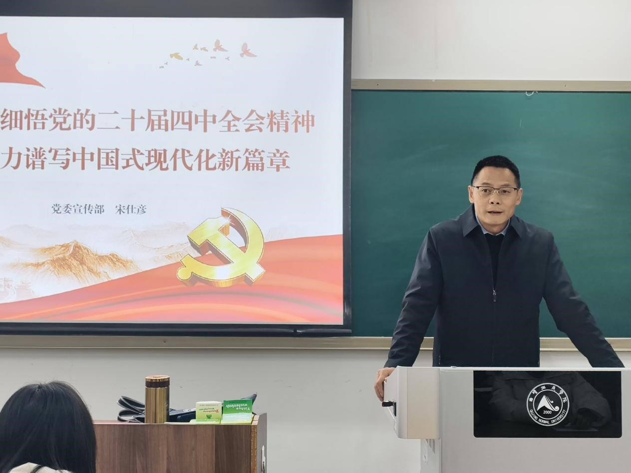 为引导青年学生深学细悟党的二十届四中全会精神,将思想伟力转化为奋进动能。2025年12月21日,学校党委委员、党委宣传部部长宋仕彦老师受邀为马克思主义学院师生宣讲党的二十届四中全会精神。