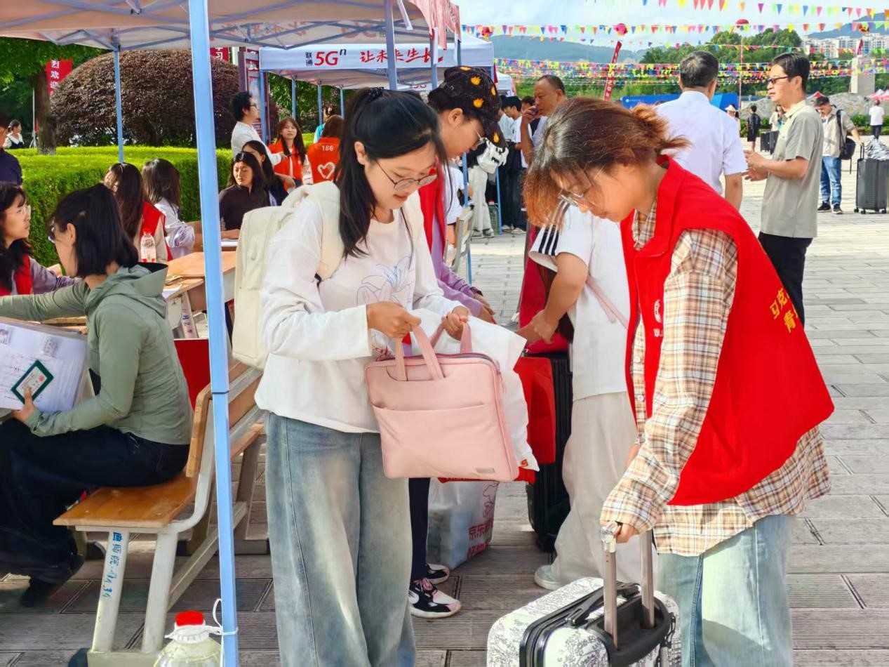 为确保迎新工作顺利进行,学院高度重视,提前谋划,专门召开筹备会议,细化分工,精心做好各项准备工作。迎新当天,学院领导、班主任老师及志愿者们早早来到迎新现场,以饱满的热情迎接新生的到来。志愿者们穿梭在各个角落,耐心地为新同学指引方向、搬运行李,有条不紊地为新同学仔细核对信息,办理入学手续,解答各种疑问。学院领导和新生及家长亲切交流,详细询问新生来校路程、报到体验及未来学习规划,叮嘱新生尽快适应新的生活与学习节奏。